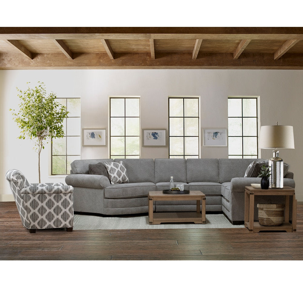 The beautiful versatility of the Brantley group will accommodate just about any taste. Its flared roll arm and contrasting toss pillows can go from traditional to contemporary without missing a beat. Ready for the fun part? Customize it! Choose from a myriad of fabric options to suit you best. This collection features a sofa, apartment sofa, loveseat, chair, ottoman, queen sleeper, and multiple sectional configurations.