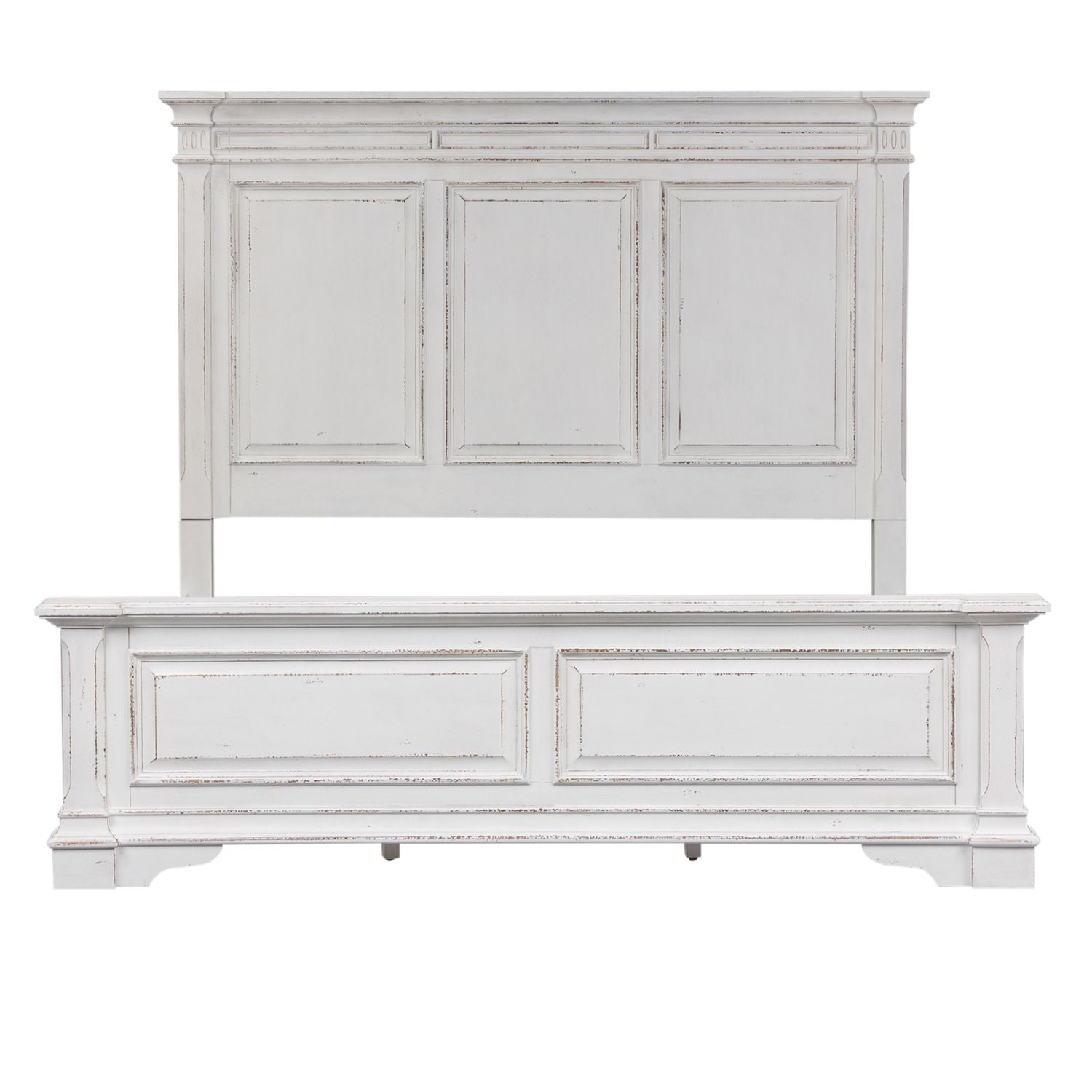 This king California panel bed is the perfect way to accent your room with an effortless blend of European Traditional design. Crafted with poplar solids and cathedral white oak veneers, this piece features a bolt on rail system and a center support slat system. The antique whitewash combined with heavy chipping, creates a truly unique look.