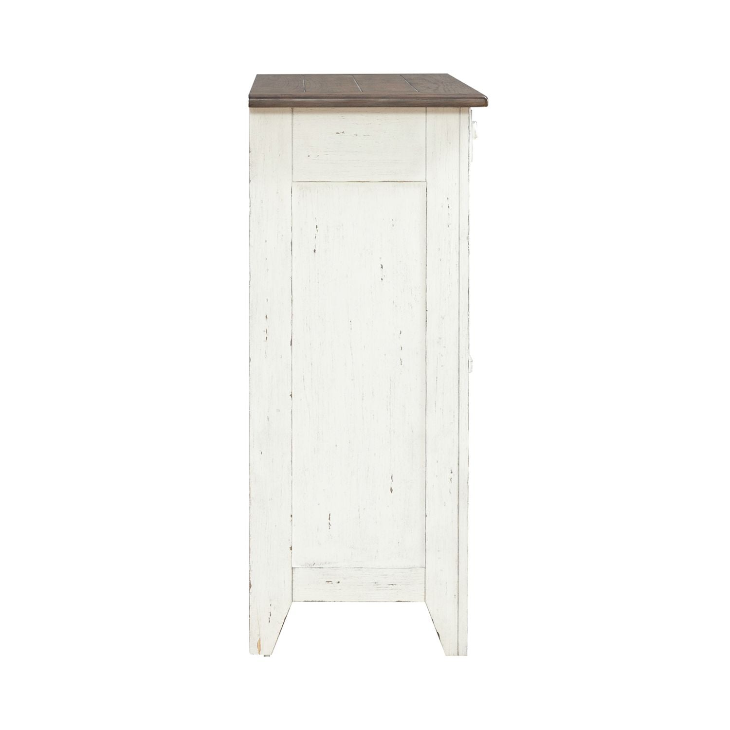 Bring both character and practicality to your dining space with the Al Fresco server. Crafted with excellence using Rubberwood solids and Pin Knotty White Oak veneers, this piece features a two-tone Graphite and Whitestone finish. The Al Fresco server is a true testament to the artistry of design and functionality. Adorned in a captivating two-tone finish, the server features wood and peg accents on the pilasters that evoke a sense of traditional craftsmanship. These details add a tactile and visual dimension, creating a piece that exudes warmth and authenticity. The combination of finishes not only enhances the server’s aesthetic appeal, but also ensures it seamlessly integrates into a variety of interior styles. The pilasters, with their wood and peg accents, impart a craftsman’s feel, creating a connection to timeless artisanal design. This attention to detail extends to the wood knob hardware on the drawers and doors, featuring a center metal insert that adds a touch of industrial charm while maintaining the server’s classic sensibility. The drawers, lined with felt for added luxury, provide a convenient and elegant space for storing dining essentials. The two wood framed glass doors, adorned with wood mullions, open to reveal an interior that is as thoughtful as it is visually stunning. Inside, discover one adjustable wood shelf, offering versatility for storage needs, and a contrasting planked back panel that adds depth and character. The top of the server, also planked, serves as an additional canvas for the tactile beauty of wood. Whether used for serving, or as a focal point in your dining area, the planked top contributes to the server’s overall charm. Elevate your dining experience with the Al Fresco server that seamlessly combines the beauty of craftsmanship, the convenience of storage, and the enduring appeal of the two-tone finish.