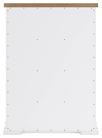 Casual style with substance. This two-tone chest of drawers raises the bar on comfortably cozy design in your soothing sanctuary. A sturdy silhouette with a classic white finish and black metal hardware exudes modern farmhouse vibes. The butcher block oak veneer top adds a relaxed aesthetic. And this charmingly curated piece is spacious enough for all your essentials.