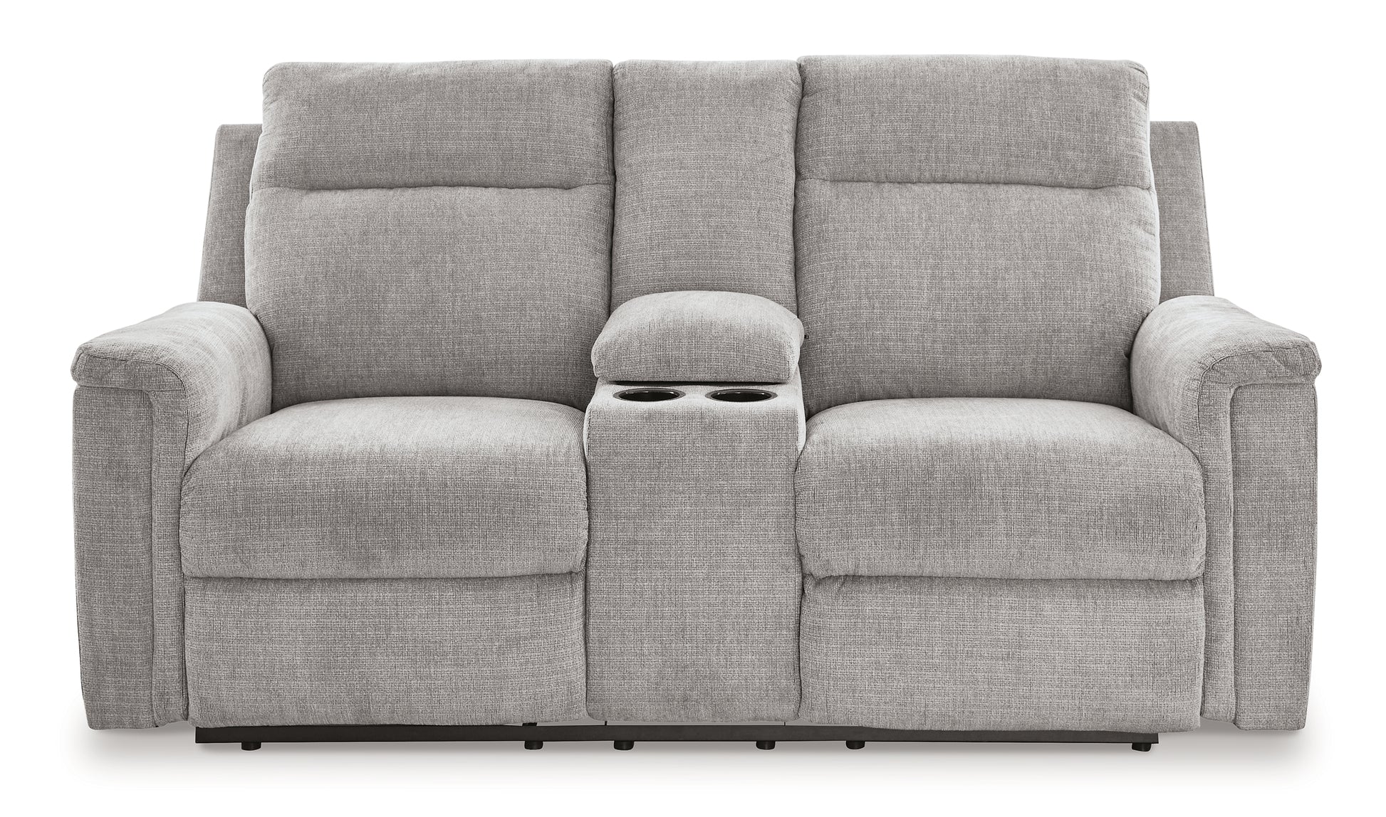 The ability to go from fully upright to relaxed and stretched out, all at the touch of a button, awaits. A beautiful blend of plush upholstery and casual style, this power reclining loveseat with console invites you to sink into ultimate comfort. Easily tuck away remotes or gaming controllers and keep drinks close by with its handy console. Whether you're hosting guests or lounging alone, you’ll find it hard to leave your living room—that’s a given.