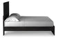 With its clean-lined look and modern attitude, this queen panel bed is a fresh style awakening. A warm charcoal hue over replicated oak grain easily complements other furniture finishes. The simple, unadorned profile is given depth and dimension with the addition of plank-style moulding on the headboard—proof that beauty lies in the details.