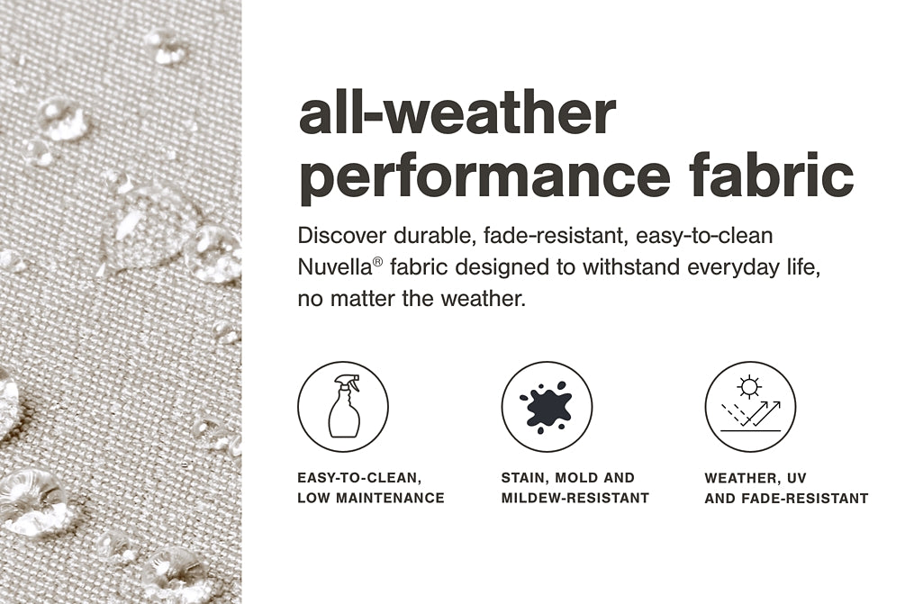 | Details | Includes 3 modular outdoor lounge chairs, Aluminum frame, Solution-dyed high-performance fabric, Nuvella® is an outdoor fabric that can be cleaned and offers UV resistance, Stainless steel hardware, Designed to withstand the harsh elements of the outdoors, Cushioned seat, Back cushion included, Includes PVC protective weather cover, Clean fabric with mild soap and water, let air dry; for stubborn stains, use a solution of 1 cup bleach to 1 gallon water | |