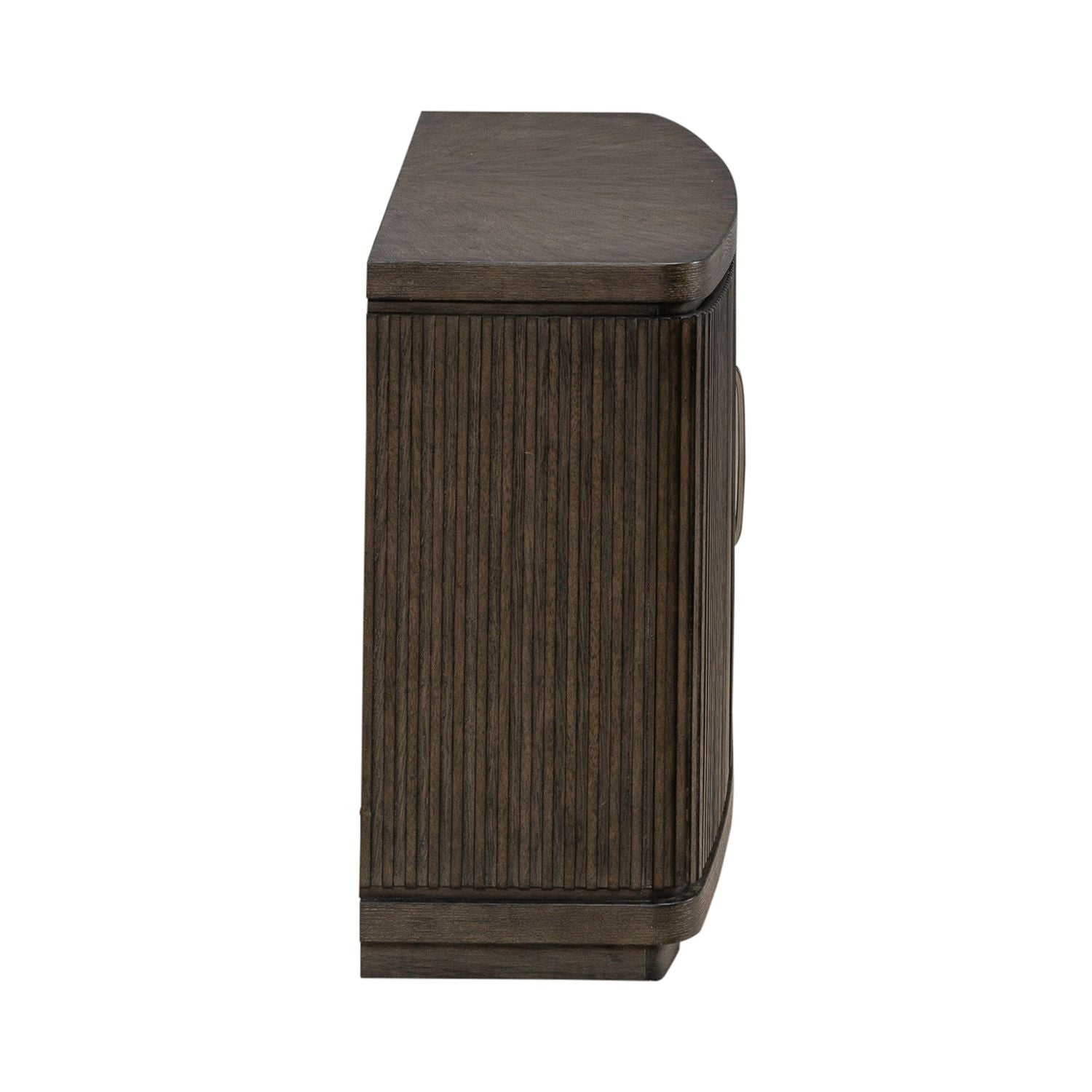 Elevate your entertainment space with the stunning Cascade Falls 82 inch TV console. Meticulously crafted using Rubberwood solids and Split Heart White Oak veneers, this piece features a Satin Espresso finish. The four reeded pattern doors and end panels of the TV console immediately draw attention, adding a touch of artistry to your living room. The reeded pattern not only showcases exquisite detailing but also creates a sense of texture, transforming the console into a visual focal point that commands admiration. Operational elegance is assured with European soft close hinges supporting the doors. The gentle, silent closure adds a touch of refinement, ensuring that every interaction with the console is a seamless experience. Accentuating the doors are custom satin nickel bar pull hardware, a subtle yet impactful touch that enhances the console's overall aesthetic. Behind the two center doors lies a world of versatility with one large adjustable shelf, providing ample space for media equipment or other essentials. The outside doors each conceal an adjustable shelf as well, offering organized storage options to suit your needs. Practicality meets design with wire management provisions, allowing you to keep cables and cords neatly organized and out of sight. Say goodbye to tangled wires and hello to a clutter-free entertainment space. Immerse yourself in the perfect blend of form and function with the Cascade Falls 82 inch TV console.