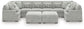 | Details | Includes 10 modular pieces: left-arm facing corner chair, 2 oversized ottomans, 2 wedges, 4 armless chairs and right-arm facing corner chair, "Left-arm" and "right-arm" describe the position of the arm when you face the piece, Modular pieces can float anywhere; sides are finished (with no connectors); versatile modular pieces fit together in a variety of configurations, Corner-blocked frame, Loose seat and reversible back cushions, High-resiliency foam cushions wrapped in poly fiber, Firmly attached ottoman cushion, Includes throw pillows, accent pillows, decorative round pillows and lumbar pillows; pillows with soft polyfill, Polyester upholstery, Low-profile legs with faux wood finish , Platform foundation system resists sagging 3x better than spring system after 20,000 testing cycles by providing more even support, Smooth platform foundation maintains tight, wrinkle-free look without dips or sags that can occur over time with sinuous spring foundations | |