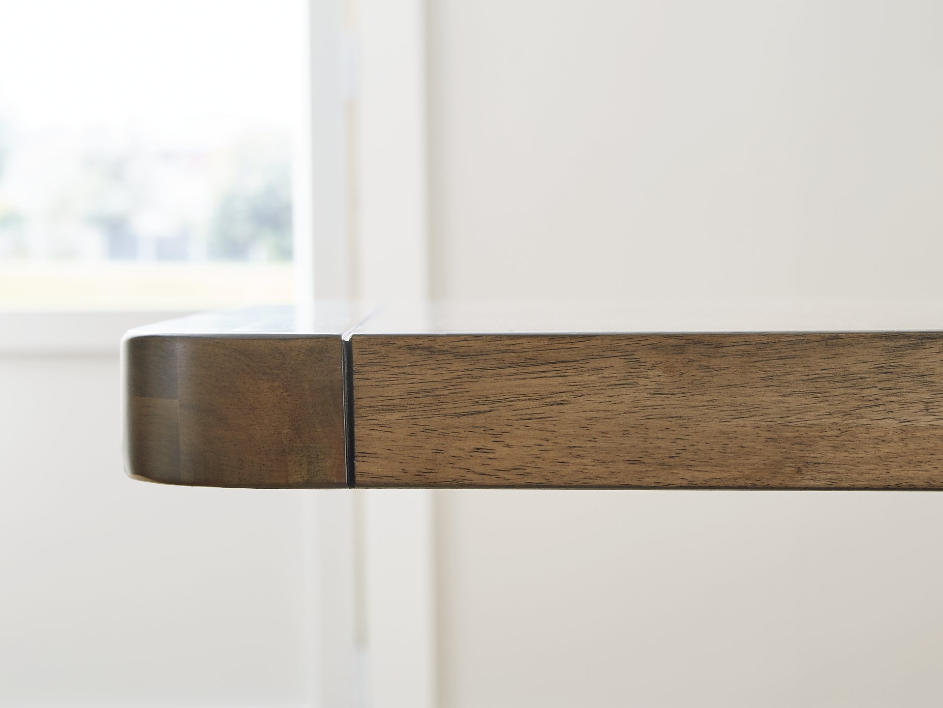 | Details | D974-35: Made with hardwood solids, hickory veneer and MDF substrates, Light brown glazed finish to enhance the natural wood grain characteristics, Removable center leaf, Table extends by pulling both ends and dropping in leaf, Top extends smoothly with a metal ball-bearing slide system, Assembly required, D974-01: Made with hardwood solids and hickory veneer, Polyester upholstery, Foam cushion, Assembly required, | |