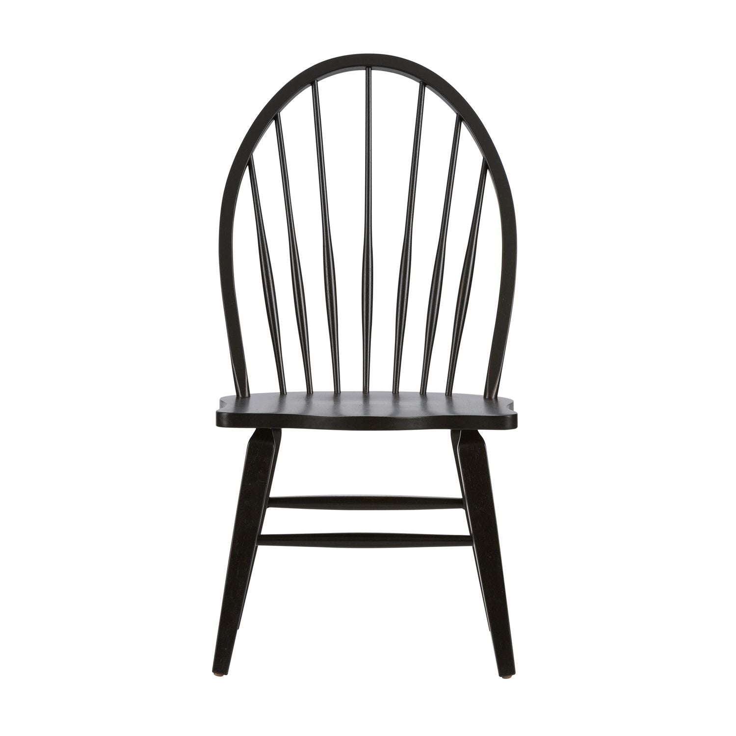 Wow family and friends with the Hearthstone Ridge five-piece rectangular table set. Crafted of rubberwood solids and oak veneers, this set features a tobacco and black finish and consists of the rectangular leg table and four Windsor back side chairs. The leg table has a planked top with canted corners and includes two 18” removable leaves that creates a grand scale. Wood and peg accents add to a craftsman feel. The table is anchored by thick tapered legs. The Windsor back side chairs are known for their comfort and durability. They feature a black finish, a saddle shaped seat for added comfort, and splayed legs with nylon chair glides to protect your flooring. Hearthstone Ridge is a casual, rustic style that never goes out of fashion.