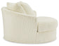 Plush and posh. Showcase your eye for on-trend texture with the statement-making cord upholstery of this oversized swivel accent chair. Its stunningly soft fabric entices in an ivory hue, complementing contemporary color palettes. Sink into the spacious cushion and plan to stay a while—this cozy living room chair highlights your high-end approach to comfort and style.