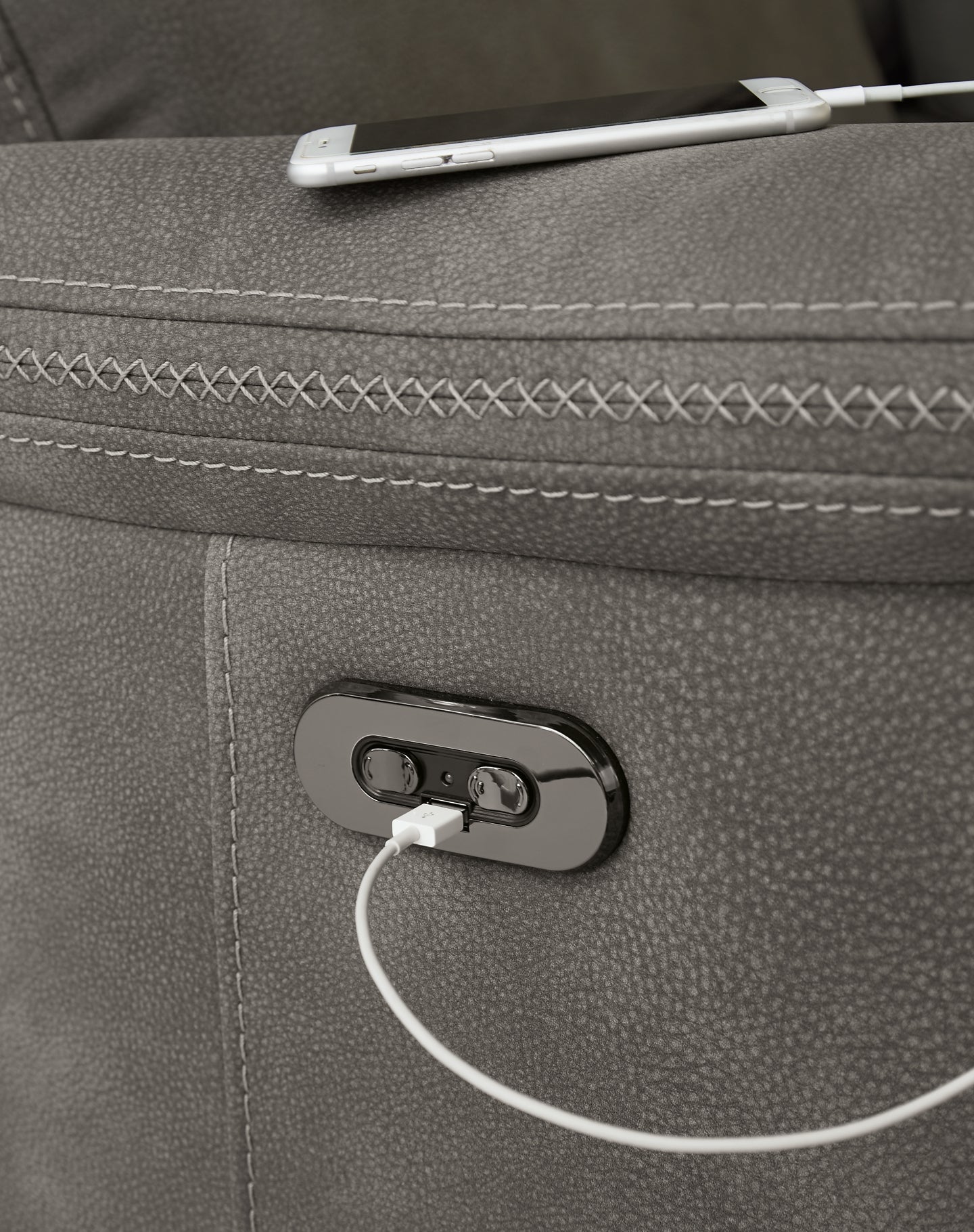 It’s time to rethink the way you relax—and time to experience the joys of this power recliner. Taking a fashion-forward approach to the art of relaxation, the recliner—with a one-touch power control and an energy-efficient USB plug-in—will elevate your style and raise your standard of living. Its zero-gravity mechanism and extended ottoman offer added comfort. And talk about low maintenance. This designer recliner is wrapped in durable upholstery that’s water-repellent and family-friendly.