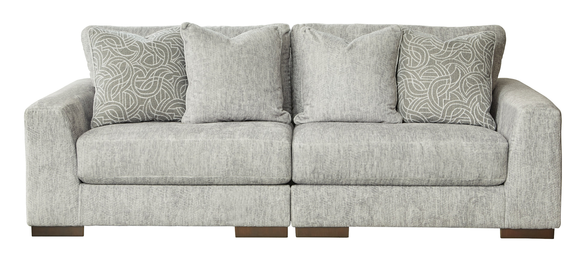 | Details | Includes 2 pieces: left-arm facing corner chair and right-arm facing corner chair, "Left-arm" and "right-arm" describe the position of the arm when you face the piece, Corner-blocked frame, Reversible cushions, High-resiliency foam cushions wrapped in poly fiber, Accent pillows included, Pillows with feather-fiber fill, Exposed feet with faux wood finish, Platform foundation system resists sagging 3x better than spring system after 20,000 testing cycles by providing more even support, Smooth platform foundation maintains tight, wrinkle-free look without dips or sags that can occur over time with sinuous spring foundations | |