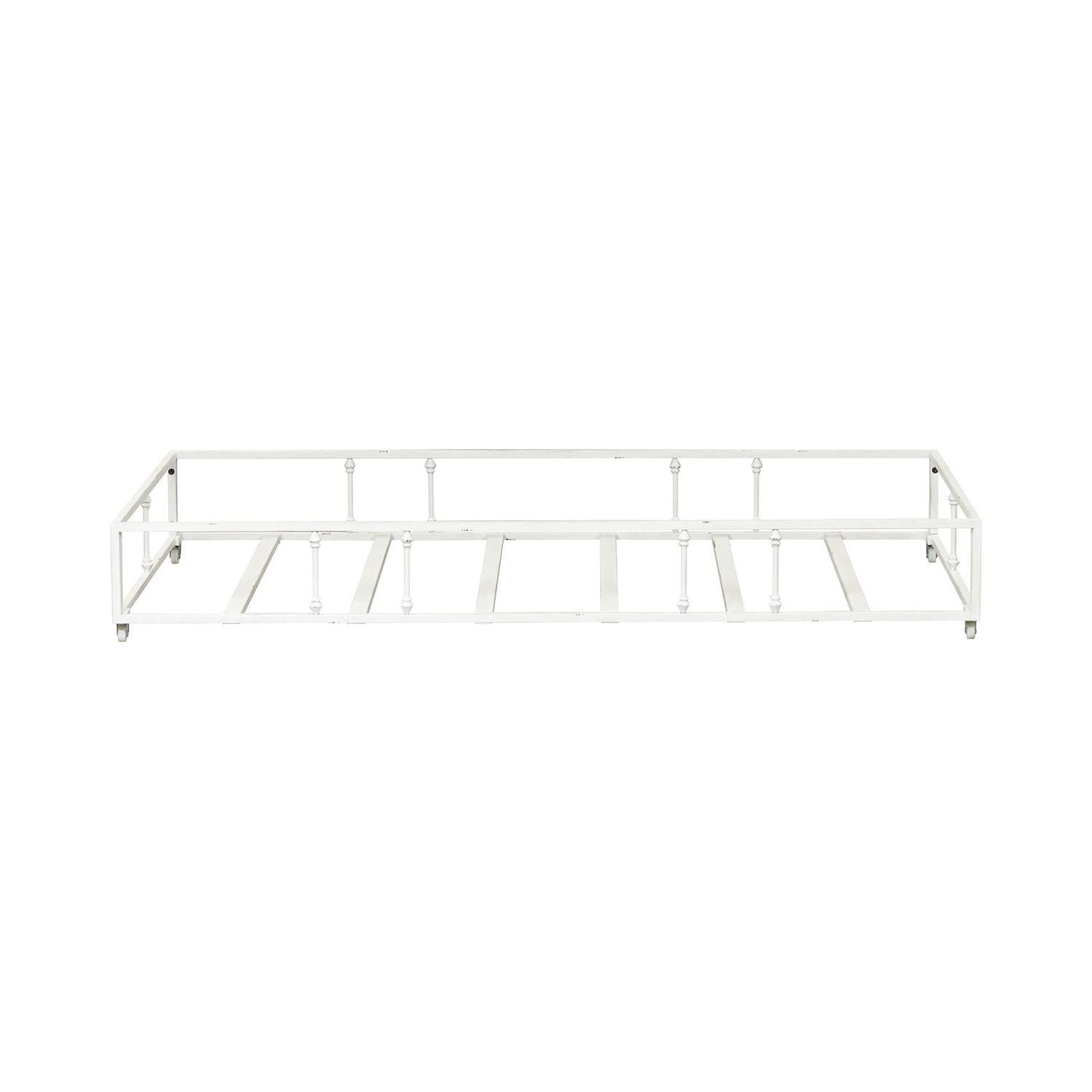 Add an extra bed without taking up any additional room with the Vintage Series trundle. Crafted of metal tube and finished in a beautiful antique white with wear thru. The trundle features turned spindles for decorative appeal and easily stores underneath the Metal Day bed when not in use. Features casters for ease of movement.
