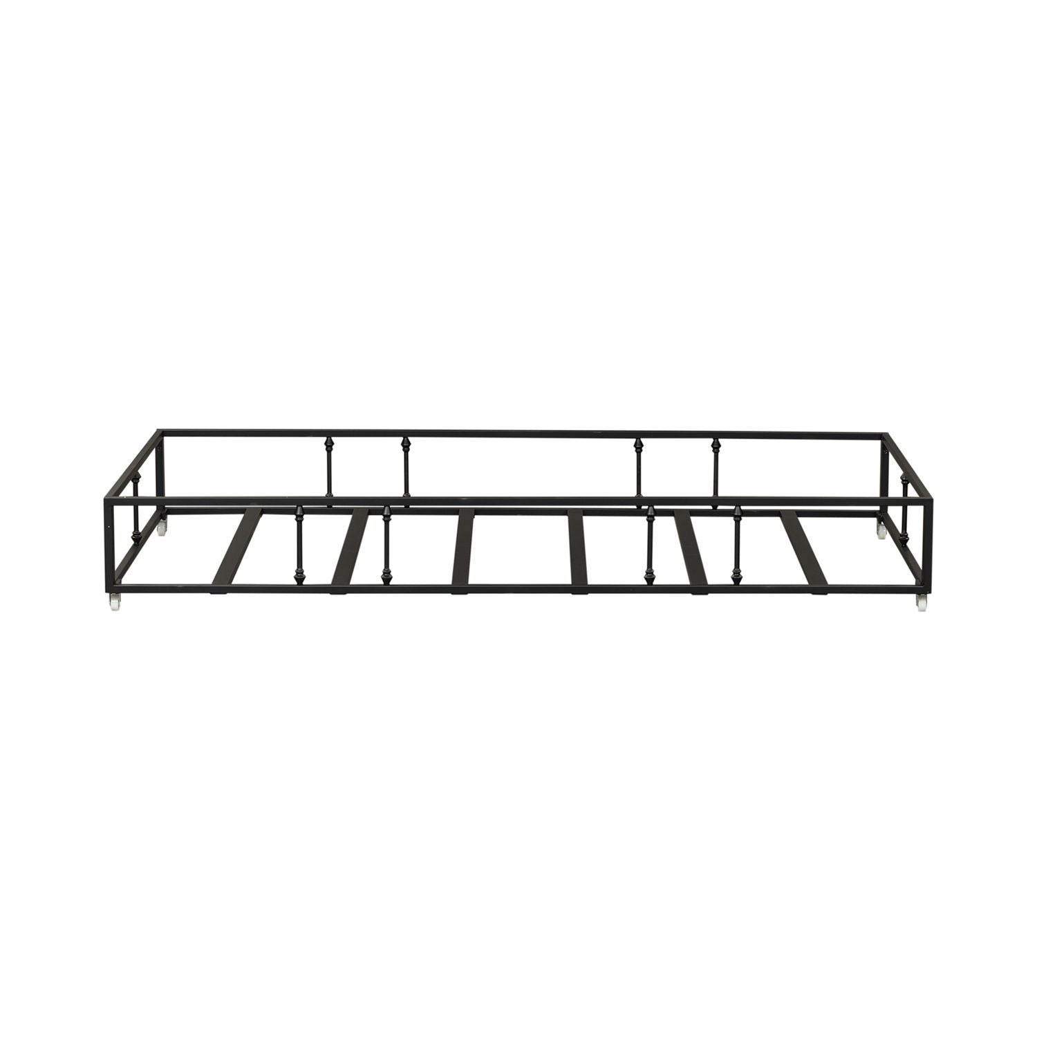 Add an extra bed without taking up any additional room with the Vintage Series trundle. Crafted of metal tube and finished in a beautiful black white with wear thru. The trundle features turned spindles for decorative appeal and easily stores underneath the Metal Day bed when not in use. Features casters for ease of movement.